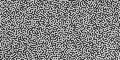 Fototapeta premium Abstract truing organic wallpaper Turing reaction diffusion monochrome seamless pattern with chaotic motion. Generative algorithm psychedelic background. Reaction-diffusion or truing pattern formation