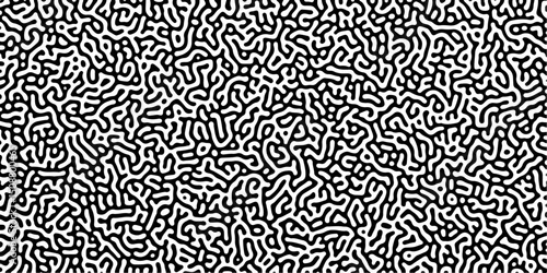 Fototapeta premium Abstract truing organic wallpaper Turing reaction diffusion monochrome seamless pattern with chaotic motion. Generative algorithm psychedelic background. Reaction-diffusion or truing pattern formation