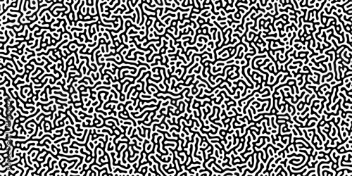 Fototapeta premium Abstract truing organic wallpaper Turing reaction diffusion monochrome seamless pattern with chaotic motion. Generative algorithm psychedelic background. Reaction-diffusion or truing pattern formation