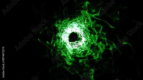 Fototapeta premium Abstract tunnel background with bright beautiful green glowing iridescent...