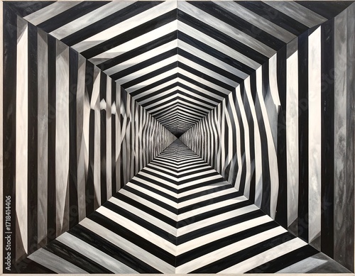 © Kandang, Naklejka premium Abstract tunnel of black and white stripes