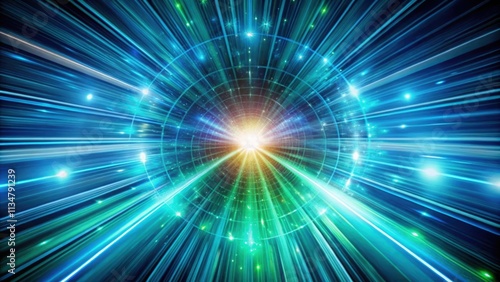 Obraz premium Abstract tunnel with dynamic blue and green speed light starburst background,...