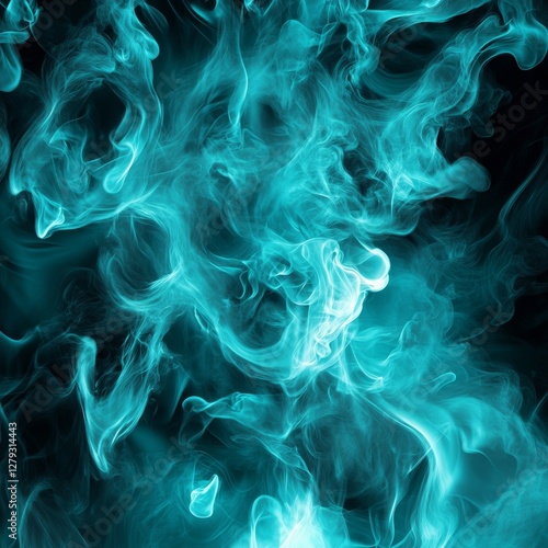 Obraz premium Abstract Turquoise Smoke on Black Background - Ethereal and Mysterious, a...