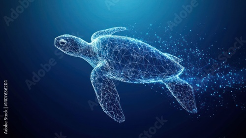 Obraz premium Abstract Turtle Swimming in Deep Ocean