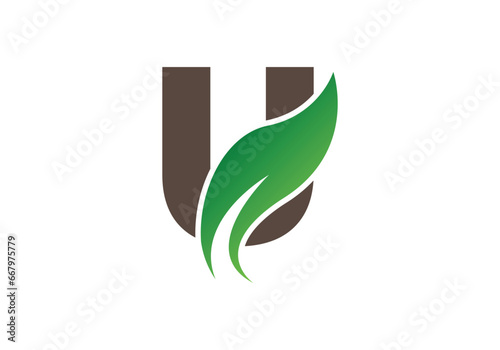 Obraz premium Abstract U letter nature logo with leaf template.
