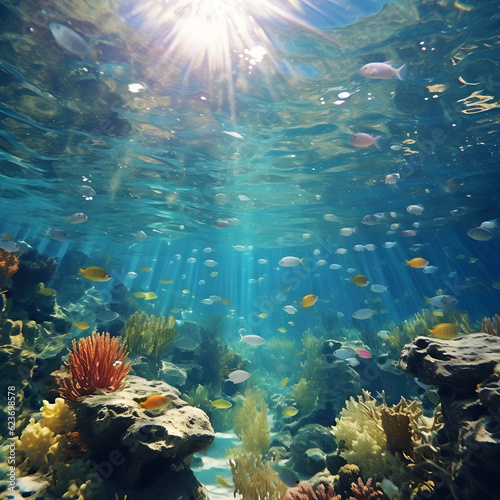 Naklejka premium Abstract underwater background, marine, coastal, world, fish, sunny, travel, beach, landscape