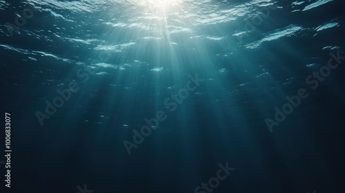 Fototapeta premium Abstract underwater view with light and dark blue gradients, subtle wave...