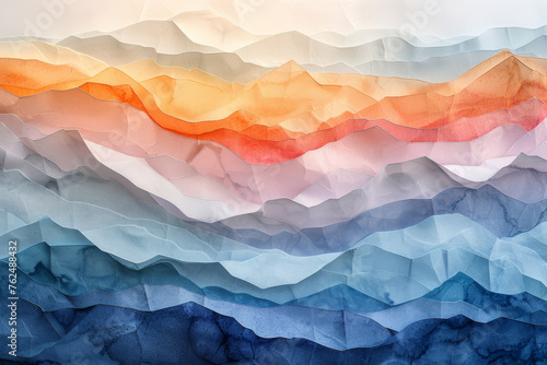 © bajita111122, Obraz premium Abstract undulating paper waves in a gradient of pastel colors creating a dynamic and artistic background..