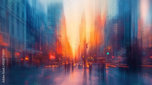© WrongWay, Fototapeta premium Abstract urban cityscape at sunset with motion blur effect