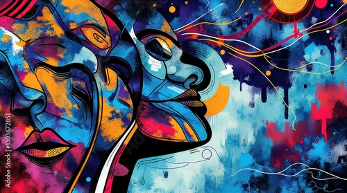 Obraz premium Abstract Urban Faces – Vibrant Graffiti Art
