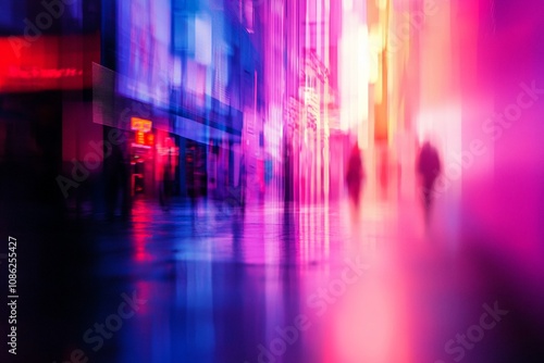 © Adi, Obraz premium Abstract Urban Scene with Colorful Blurs and Silhouettes