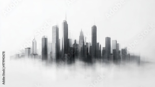 Naklejka premium Abstract Urban Skyline in Misty Fog - Modern Monochrome Cityscape Illustration