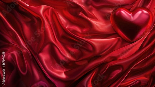 © The 2R Artificiality, Obraz premium Abstract Valentine s Day Background with Red Silk Cloth and Heart Shape