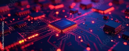 Obraz premium Abstract vector background, glowing circuit board texture , purple, high-tech, red