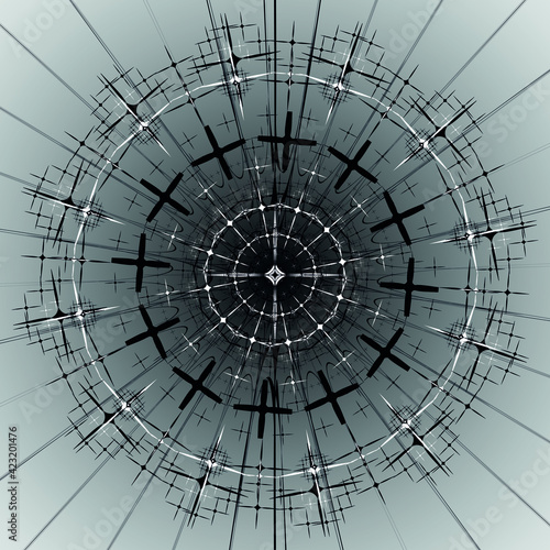 © Evgeniya, Obraz premium Abstract vector background. Psychedelic dark circles and lines.