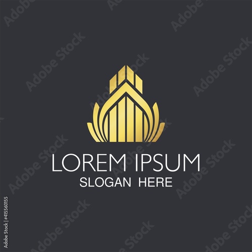 © Parashar Mangela, Fototapeta premium abstract vector elements for real estate luxurious logo design. concepts for real estate industry, infrastructure, architecture, exclusive services and products.
