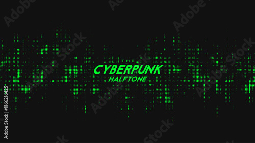 © garrykillian, Fototapeta premium Abstract vector green cyberpunk halftone sound wave. Scrathed dotted texture element.