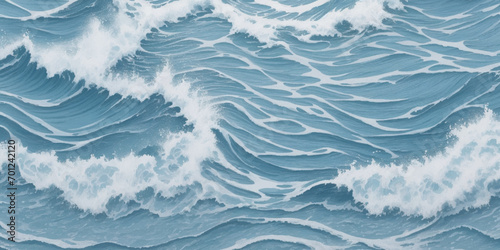 © Vactor Viky, Obraz premium Abstract vector ocean wave soft blue and white background. Seamless pattern with blue waves.