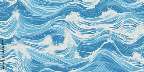 © Vactor Viky, Obraz premium Abstract vector ocean wave soft blue and white background. Seamless pattern with blue waves.