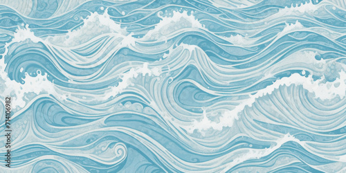 Obraz premium Abstract vector ocean wave soft blue and white background. Seamless pattern...