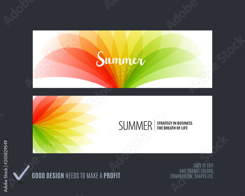 © Diamond Graphics, Obraz premium Abstract vector set of horizontal website banners with colourful flowers abstract shapes for web design.