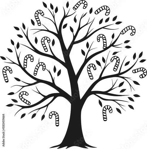 Obraz premium Abstract vector tree with birds, a nature-inspired design with floral...