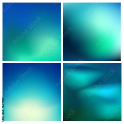 Fototapeta premium Abstract vector turquoise green blurred background set. 4 colors set. Square...