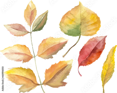 © vasabii, Fototapeta premium Abstract vector watercolor illustration of autumn leaves. Hand drawn nature design elements isolated on white background.