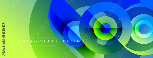 Obraz premium Abstract vibrant design features overlapping circles. Green, blue hues create...