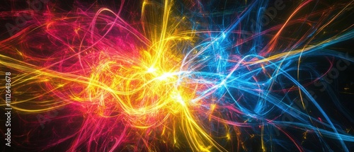 © LiaSyafitri, Fototapeta premium Abstract vibrant energy waves in pink, yellow, and blue hues.