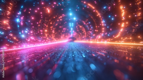 Fototapeta premium Abstract Vibrant Light Tunnel With Glowing Lines and Bokeh Effect