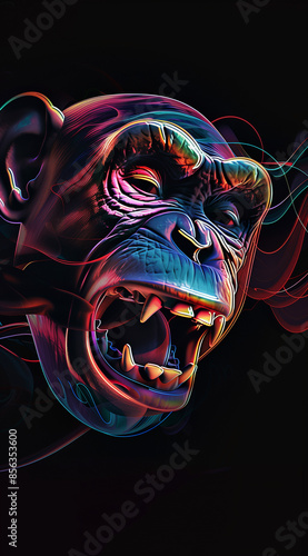 © Baron Von Fedorov, Naklejka premium Abstract Vibrant Monkey Face with Crooked Expression for a T-shirt print