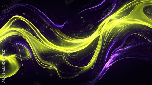 Obraz premium Abstract vibrant swirls of yellow and purple against a dark background,...