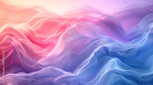 © Qstock, Obraz premium Abstract Vibrant Wave Pattern in Soft Pastel Colors - Digital Illustration for Creative Design and Background Use
