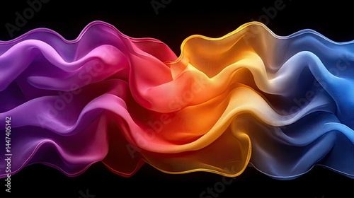 Fototapeta premium Abstract vibrant waves flow gracefully across a dark background in a...