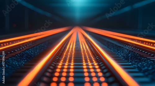 Fototapeta premium Abstract View of Train Tracks with Illuminated Rails and Dramatic Lighting in...
