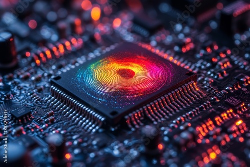 © Andrii Savchuk, Fototapeta premium Abstract visualization of a digital core surrounded by red and blue circuits