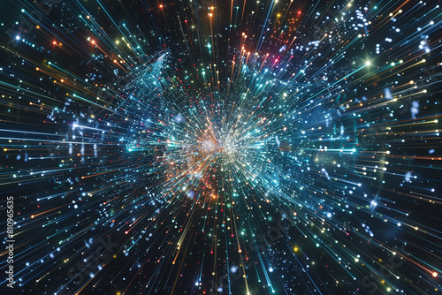 Obraz premium Abstract visualization of big data analytics with infinite data points converging in a cosmic digital nebula