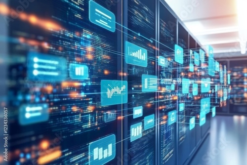© imi, Obraz premium Abstract Visualization of Data Flow in a Modern Server Room