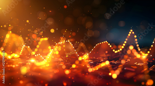 Fototapeta premium Abstract visualization of data trends with glowing lines and bokeh effects.