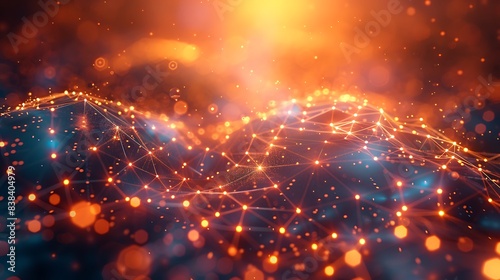 Obraz premium Abstract visualization of digital data with glowing orange and blue network...