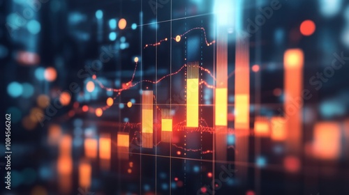 Fototapeta premium Abstract visualization of financial data with glowing bars and lines representing trends.