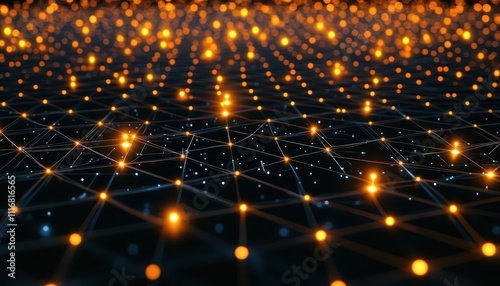 Fototapeta premium Abstract visualization of interconnected nodes and glowing lights.