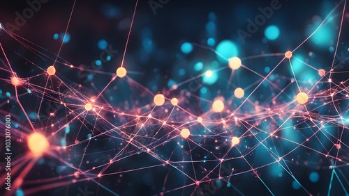 Fototapeta premium Abstract visualization of interconnected nodes and lines representing data or networks.