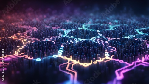 Fototapeta premium Abstract visualization of interconnected nodes and pathways, representing...