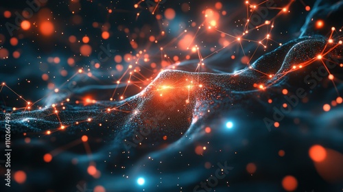 Obraz premium Abstract visualization of interconnected particles and waves.