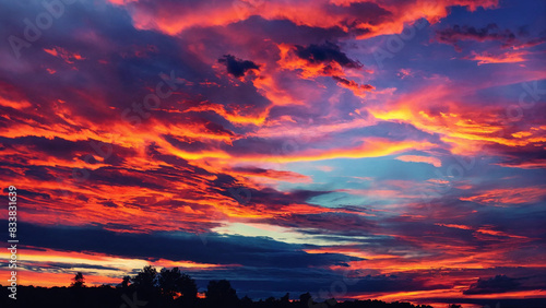 © Eduardo, Fototapeta premium Abstract vivid sky at sunset with copyspace, 16:9, 300dpi