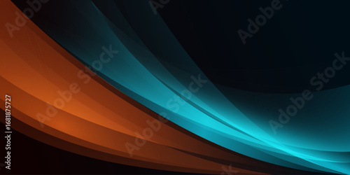 © 100yDesign, Naklejka premium Abstract wallpaper with flowing glowing orange and blue curved lines creating a dynamic and modern digital background. Perfect for technology, web design, presentations, or business.