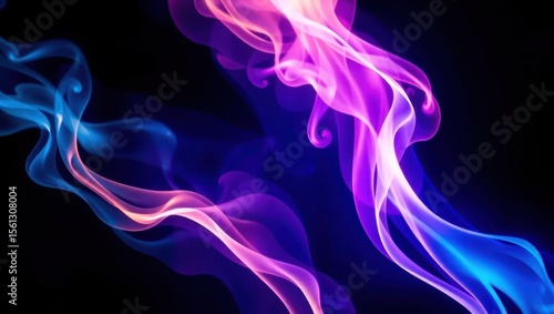 © BlackCat, Naklejka premium Abstract wallpaper with swirling colorful smoke trails and light streaks on a dark gradient background. High contrast, glowing effects, perfect for digital design and creative backdrops