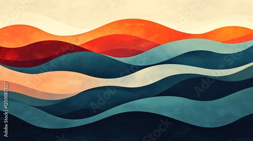 © heinng, Naklejka premium Abstract Warm-toned Waves Gently Rolling Landscape. AI Generated